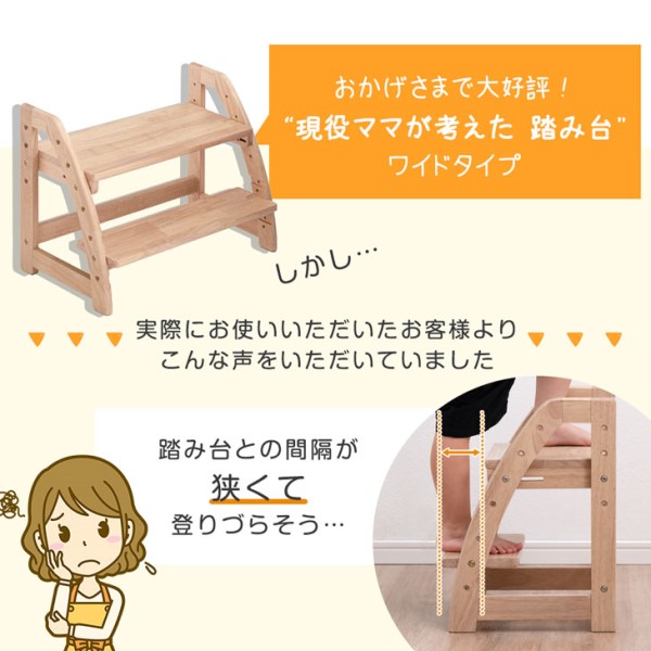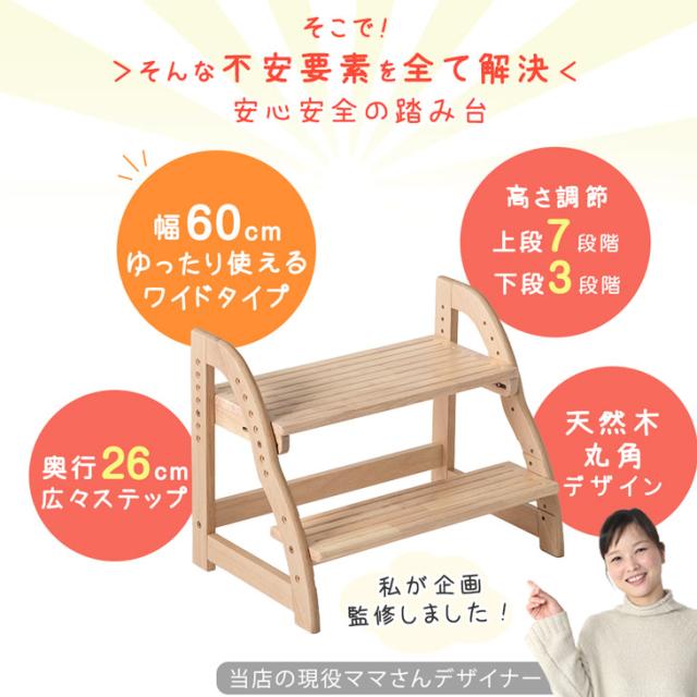 【本日P5%還元】 踏み台 2段 ワイド 60cm ステップ&スツール 高さ調節 4段階 天然木 安心の水性塗装 ステップ台 ステップ スツール 足台 ふみ台 踏台 子供 こども 子ども キッズ 幼児 木製 玄関 キッチン 洗面所 お手伝い 2人 現役ママが考えた