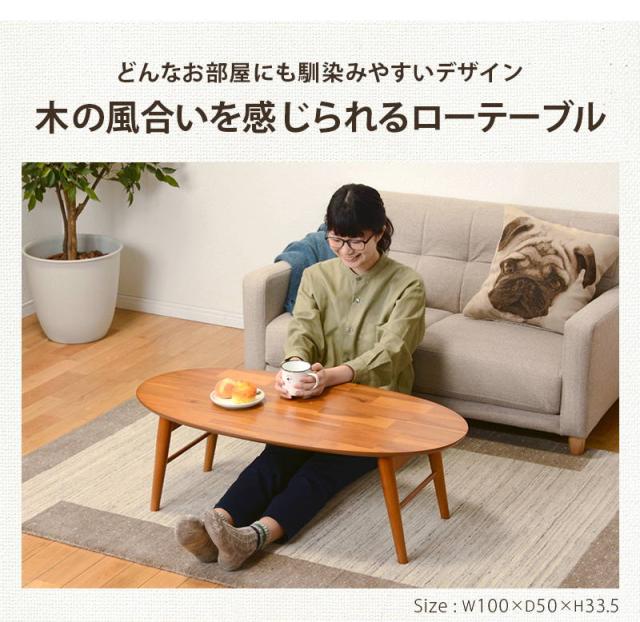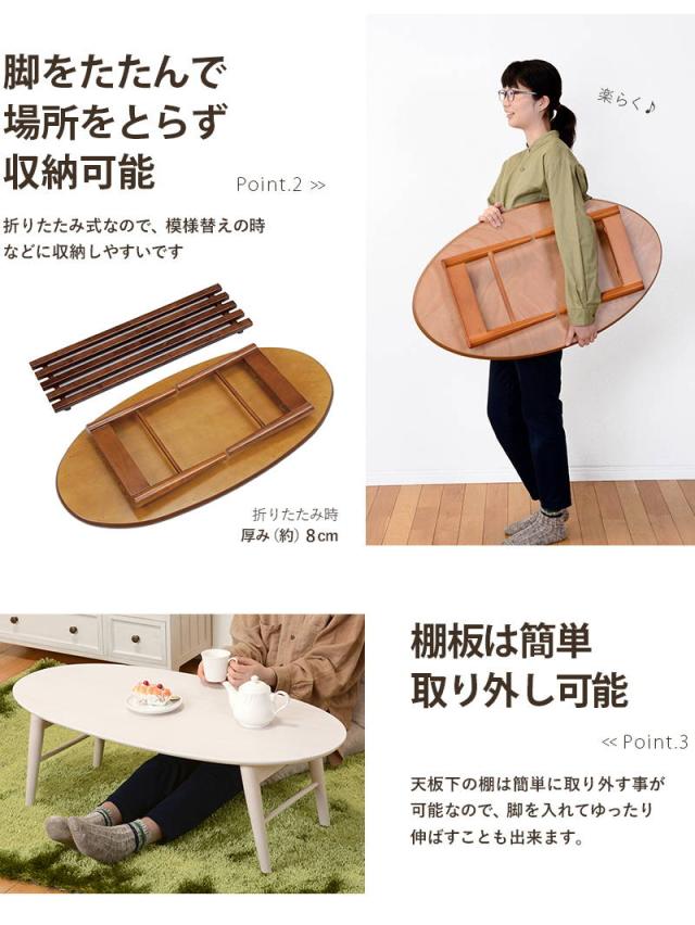 テーブル 折れ脚テーブル 折りたたみ フォールディングテーブル 座卓 楕円 オーバル 幅100cm