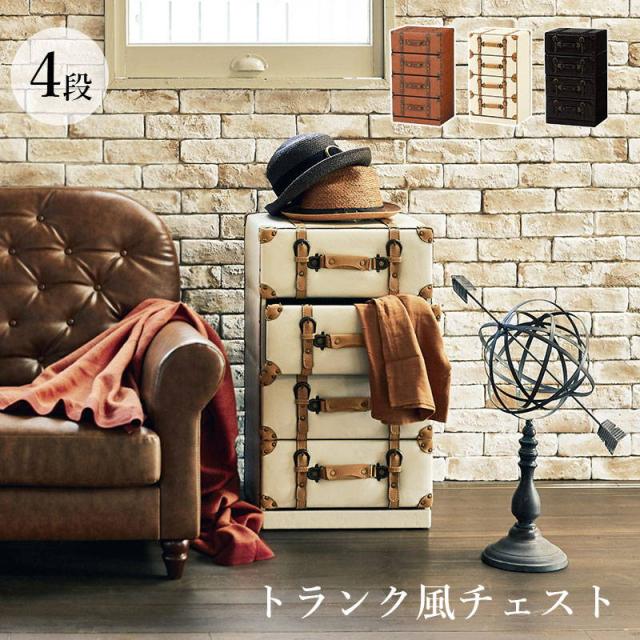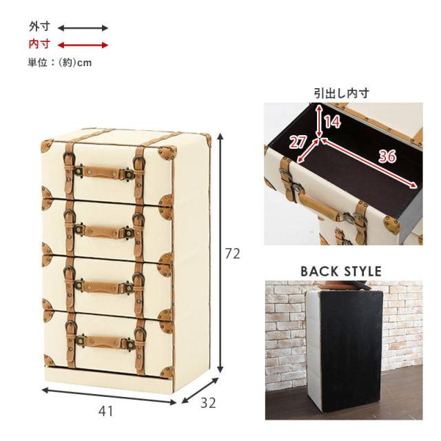 チェスト 4段 幅41cm おしゃれ レトロ トランク風チェスト 収納棚 衣類タンス