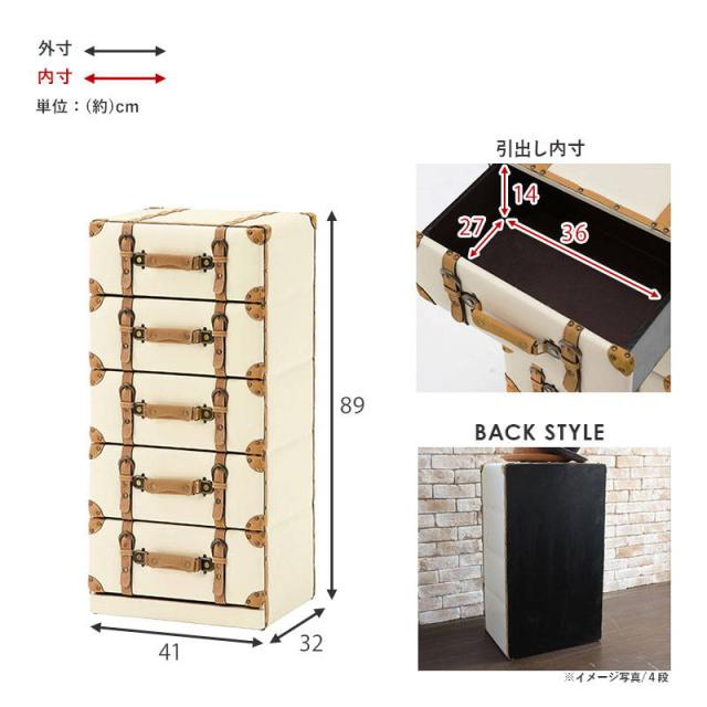 チェスト 5段 幅41cm おしゃれ レトロ トランク風チェスト 収納棚 衣類タンス