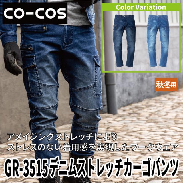 コーコス 作業服 秋冬用 GR-3515 デニムストレッチカーゴパンツ SS-LL