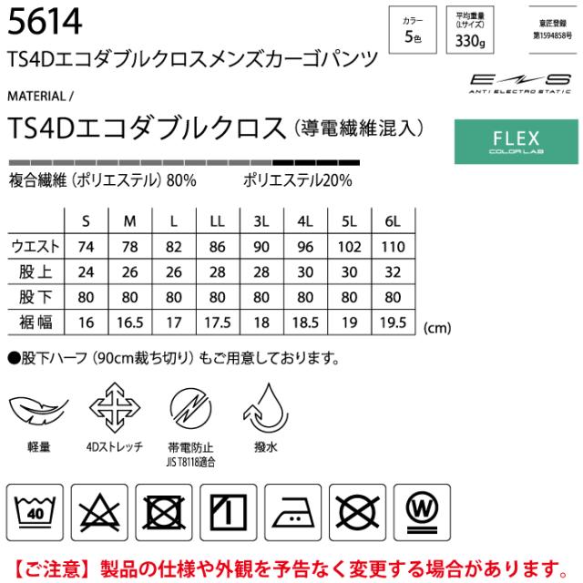 5614 TS4Dエコダブルクロスメンズカーゴパンツ