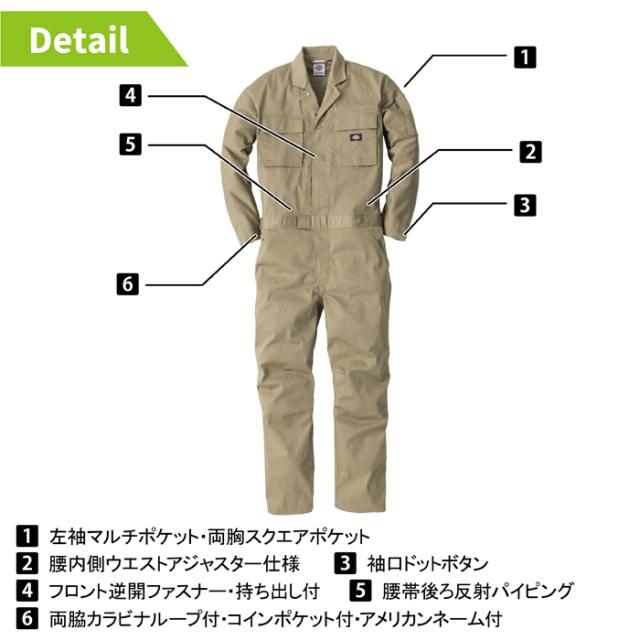 ディッキーズ Dickies 作業服 作業着 オールシーズン D-766 ツナギ SS-5L