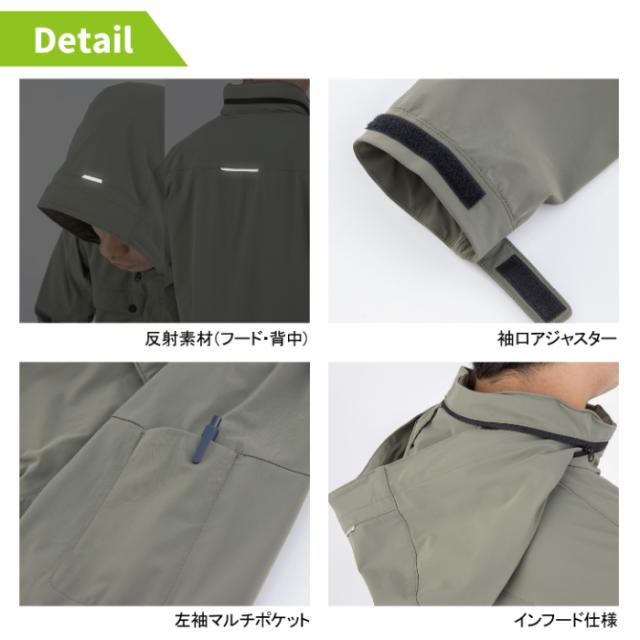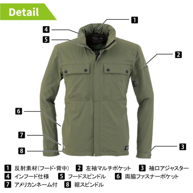◇機能:防風・反射テープ(背中・フード)・両脇ファスナーポケット・左袖マルチポケット・インフード仕様・フードスピンドル・カフスアジャスター・裾スピンドル・アメリカンネーム