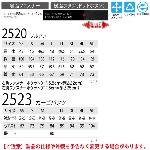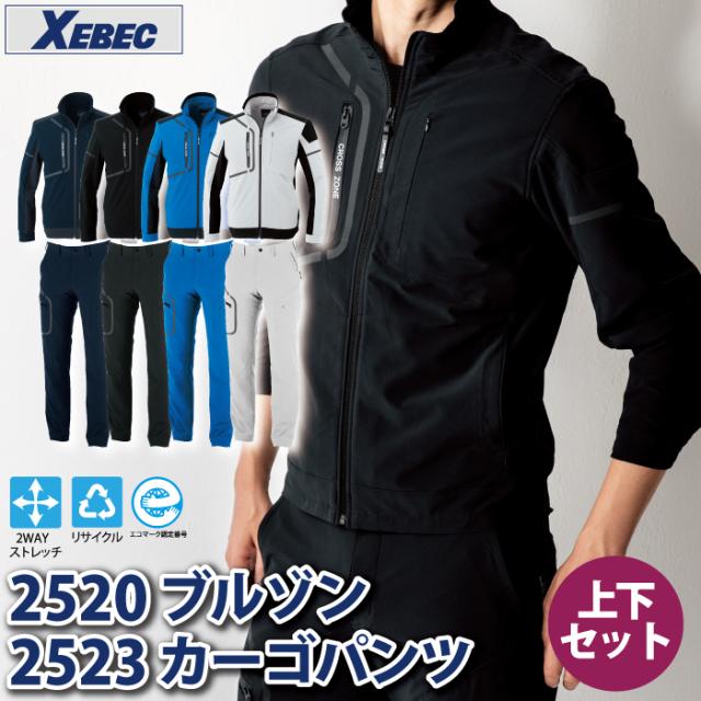 ジーベック XEBEC 作業服 上下セット 2520 ブルゾンS-3L と 2523 カーゴパンツ SS-3L 秋冬用 作業着 作業ズボン
