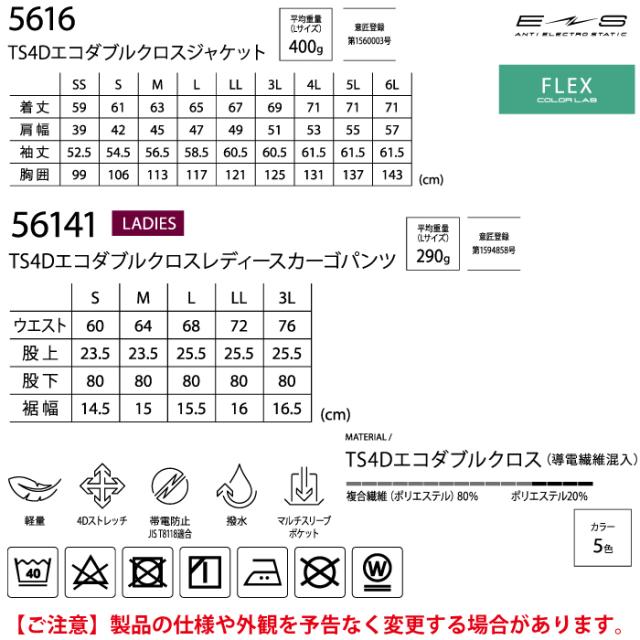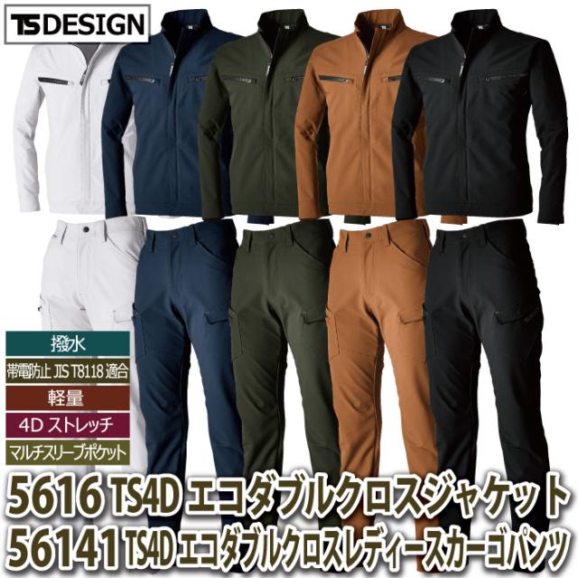 藤和 TSDESIGN 作業服 上下セット 5616 TS4DエコダブルクロスジャケットM-3L と 56141 TS4Dエコダブルクロスレディースカーゴパンツ S-3L オールシーズン