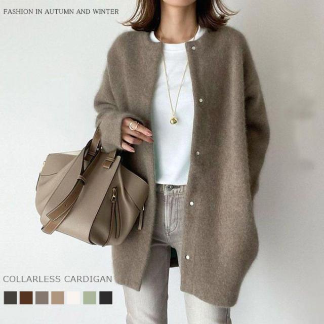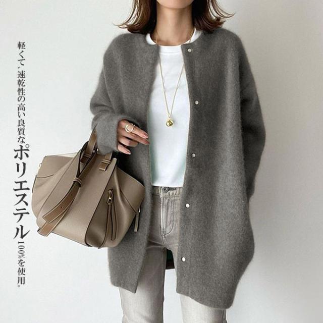 15%OFF, 3043円 karei カーディガン レディース 前開きカーディガン 秋冬アウター ロングコート アウター カーディガン 無地 羽織 長袖 秋冬 ノーカラー ブルゾン ゆったり お尻隠れ ロング カジュアル風 40代 50代ファッション あったか_f