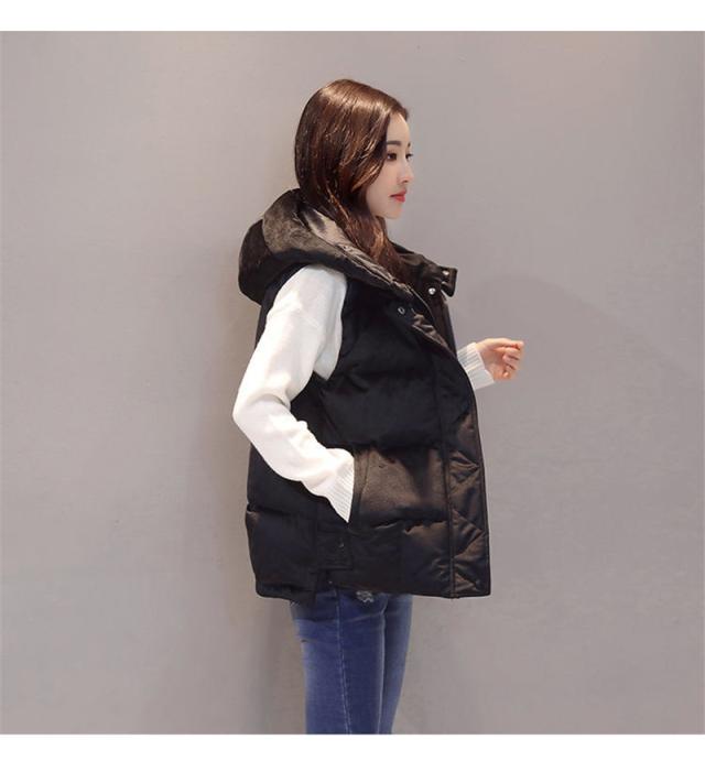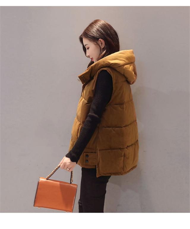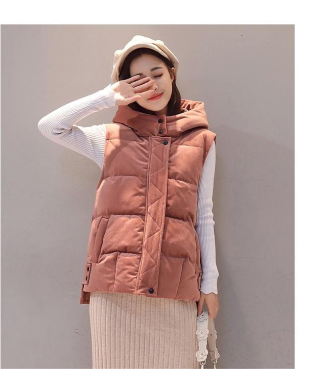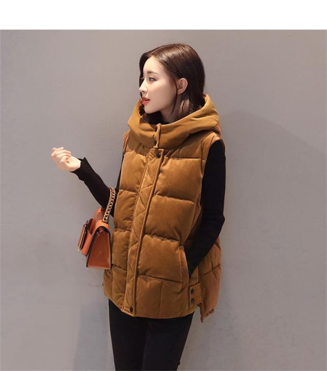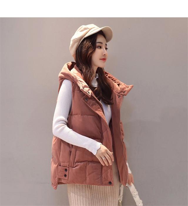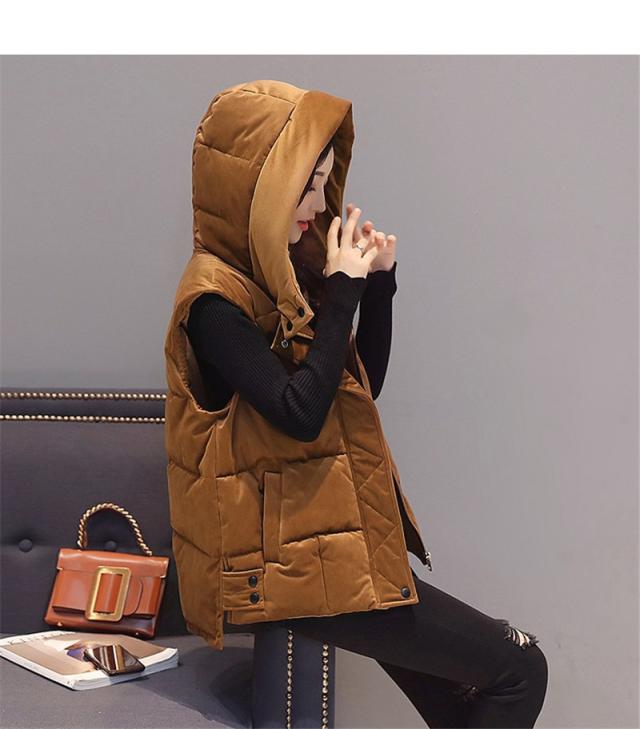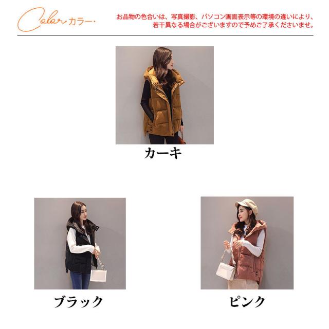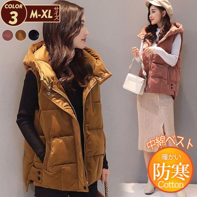 中綿ベスト レディース ベスト アウター ショート丈 立ち襟 フード付き ゆったり 柔らか 無地 厚手 防寒 着痩 きれいめ 通勤