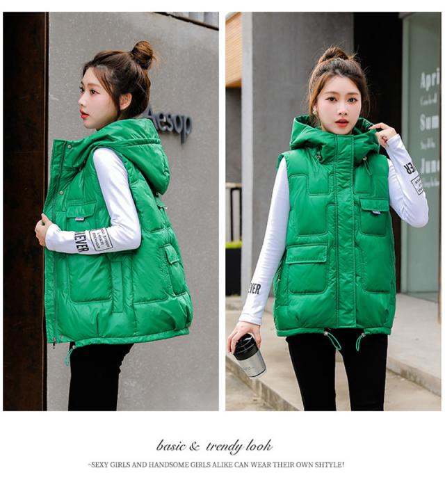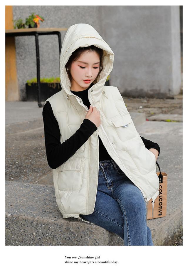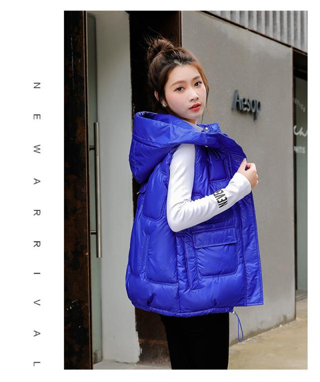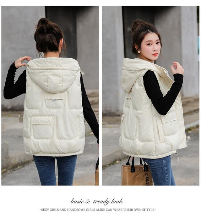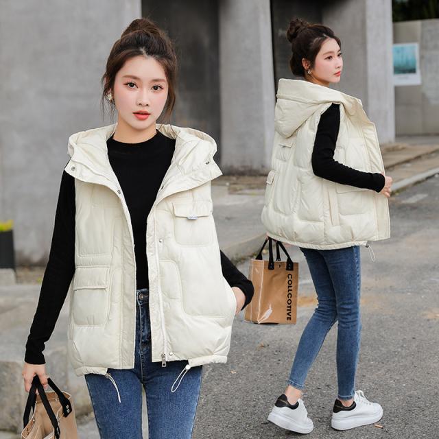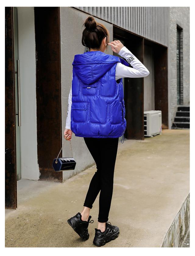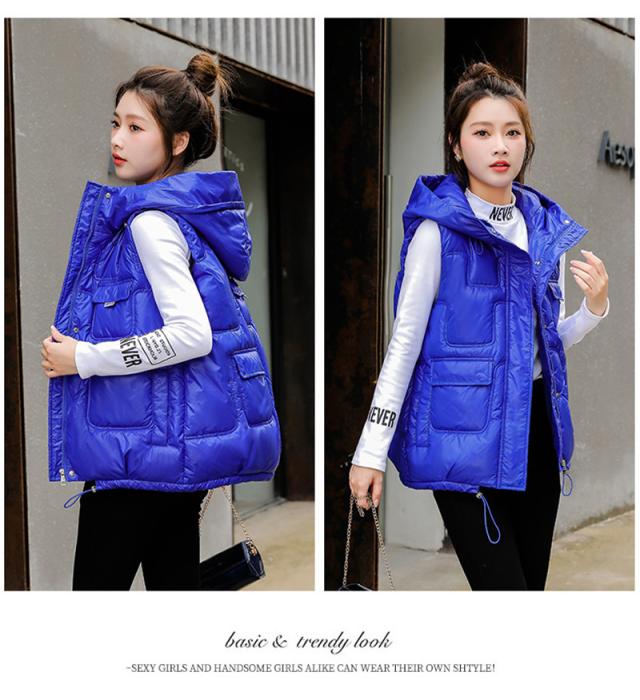 中綿ベスト レディース ベスト アウター ショート丈 フード付き 光沢感 ゆったり 柔らか 無地 厚手 防寒 着痩 撥水 通勤 秋