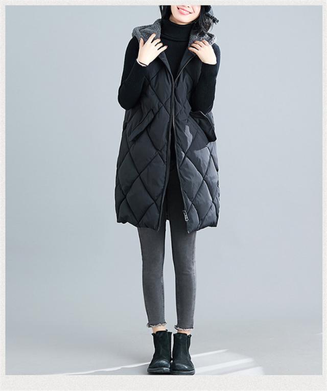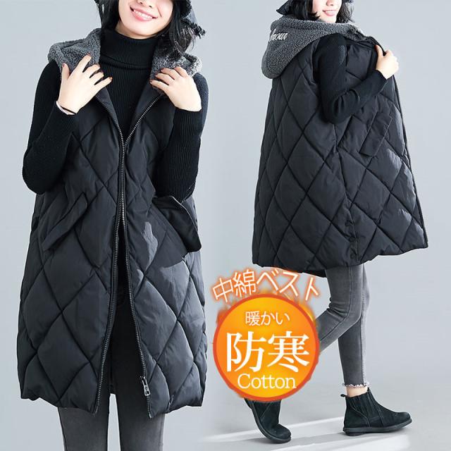 ロングベスト 中綿ベスト レディース ベスト 膝上 中綿 ダウンベスト ロングコート パーカー 羽織 シンプル 暖か 防寒 通勤