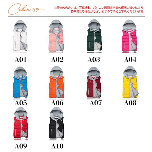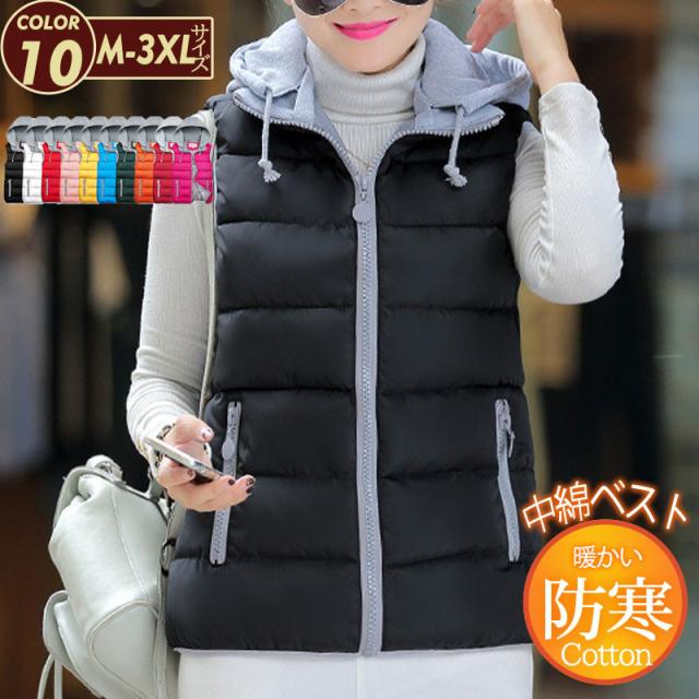 ベスト 中綿ベスト レディース ダウン風ベスト アウター フード付き バイカラー ダウンジャケット 大きいサイズ 暖かい 防風 防