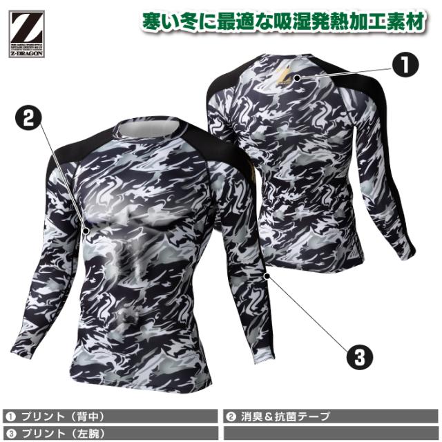 自重堂 Z-DRAGON 作業服 インナー 78154 ロングスリーブ SS-LL 秋冬用 作業着