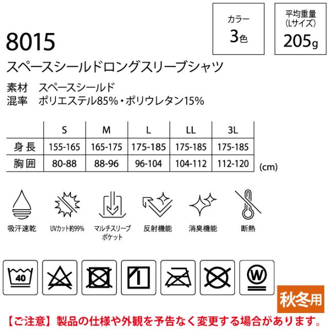 藤和 TSDESIGN 作業服 8015 スペースシールドロングスリーブシャツ 3L インナー 秋冬用