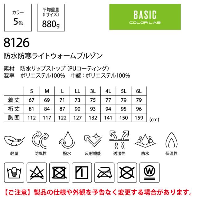 藤和 TSDESIGN 作業服 秋冬用 8126 防水防寒ライトウォームブルゾン 5L-6L