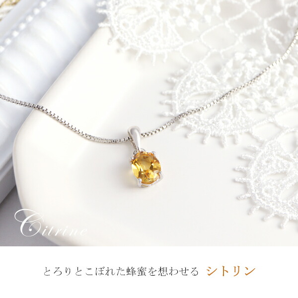 シトリン 一粒 ネックレス シルバー925 トパーズ 11月 誕生石 天然石 オーバル 楕円型 ひと粒 黄金 ゴールド 金色 黄色 上品 大人 綺麗