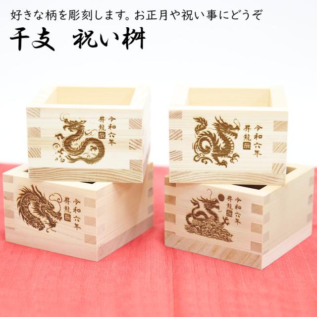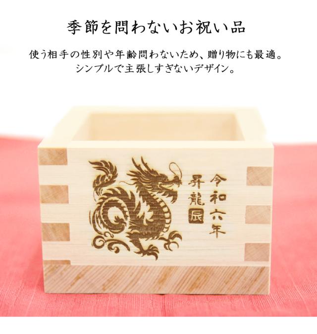 2024干支 升 枡 酒器 マス酒 一合枡 正月 日本酒 お祝い プレゼント ギフト 贈り物 還暦 銀婚式 敬老の日 父の日 辰 たつ 龍 竜 りゅう ドラゴン