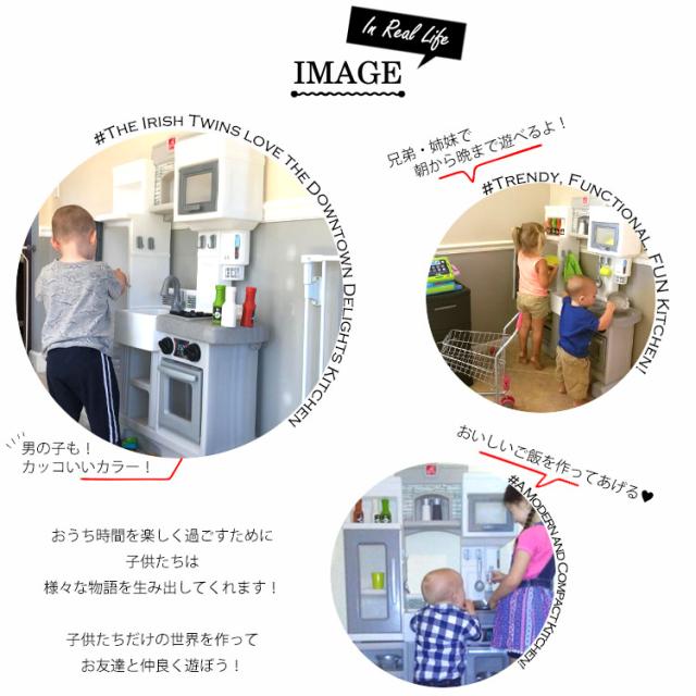 本物を再現!リアルサウンドや光の演出で子供達のテンションもUP お鍋やフライパンを置くと、異なるサウンドとライトアップ! ホワイト×グレーのオシャレなキッチンで 子供部屋からリビングにも!いつでも遊べるキッチン遊具です コンロ、単3電池2本必要(含まれません) |