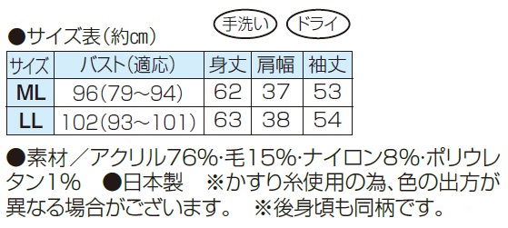 ●素材/アクリル76%・毛15%・ナイロン8%・ポリウレタン1%