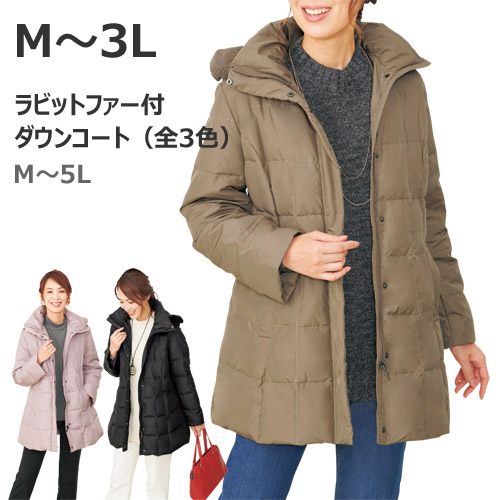 大きいサイズ ラビットファー付 ダウンコート 全3色 4L 5L アウター ダウンジャケット フード付き ピンク ブラック ブラウン レディース 婦人服 ミセス シニア 女性 シニアファッション 50代 60代 70代 80代 母の日 お母さん かわいい 茶色 黒 上着 外套 撥水加工
