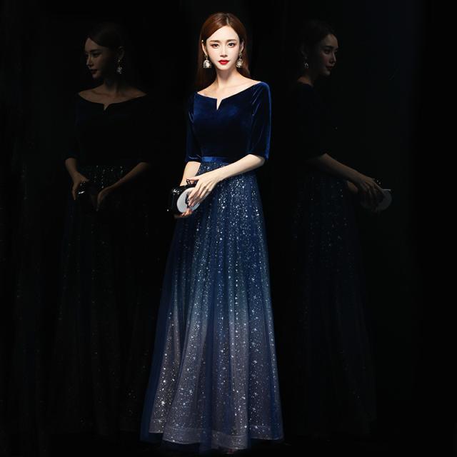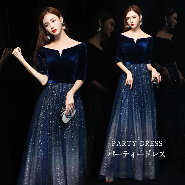 パーティードレス レディース ロングワンピース ロングドレス 演奏会 結婚式 ドレス 袖あり aライン フォーマル 発表会 二次会
