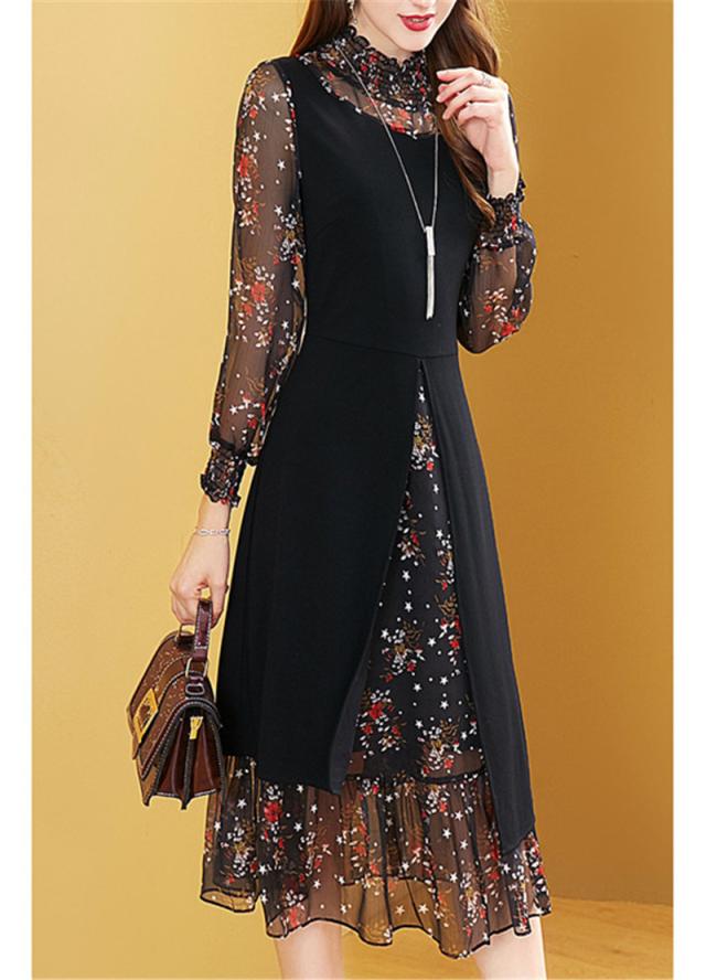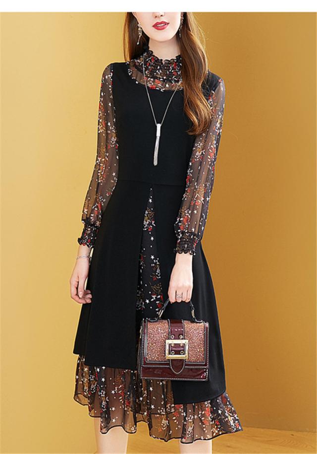 パーティードレス レディース ロングワンピース 長袖 きれいめ 上品 シフォンワンピース ロング丈 花柄 大きいサイズ おしゃれ