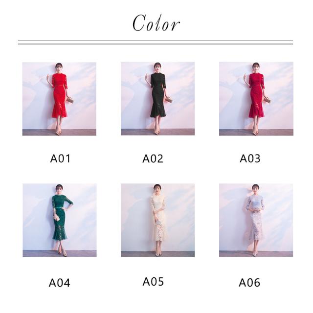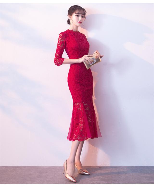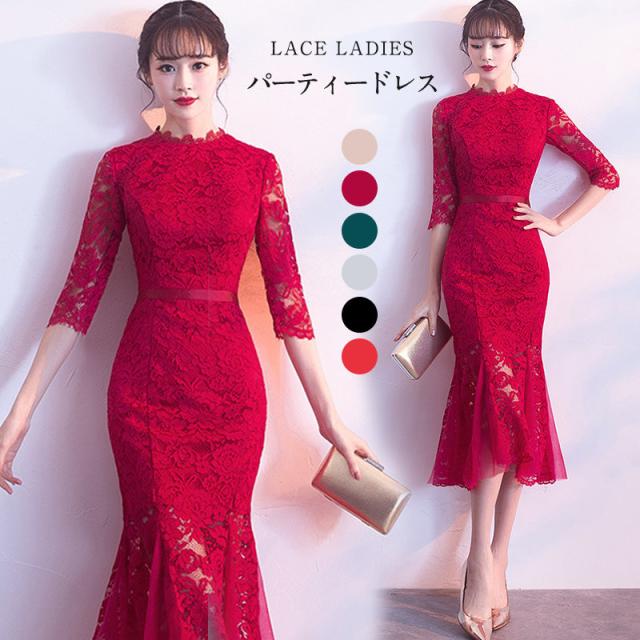 パーティードレス レディース ロングワンピース マーメイドドレス レースドレス ミモレ丈 結婚式 二次会 お呼ばれ ゲストドレス