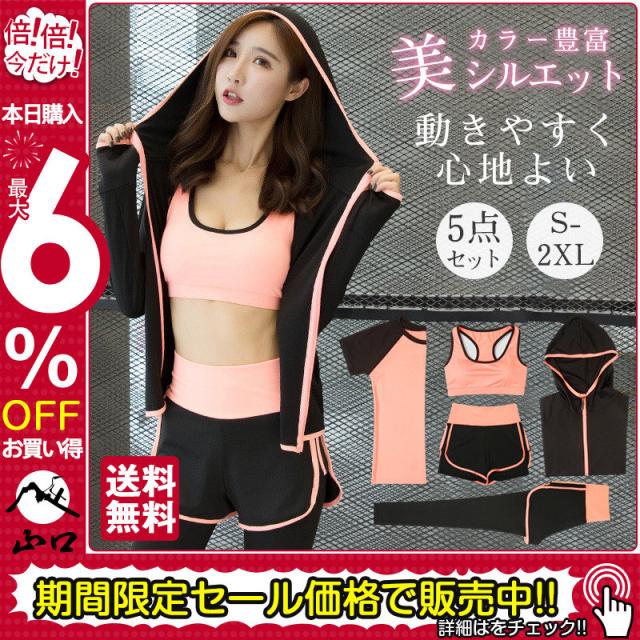 スポーツウェア レディース 5点セット セットアップ ヨガウェア ランニングウェア ウォーキング トレーニング パンツ フィットネ