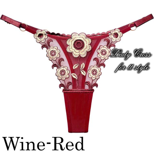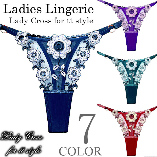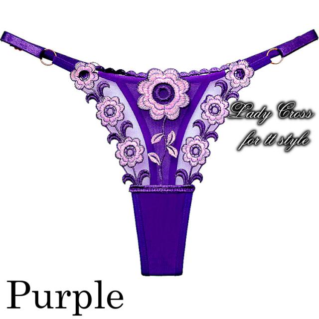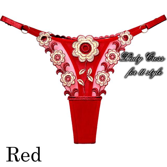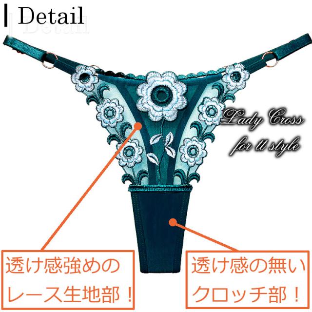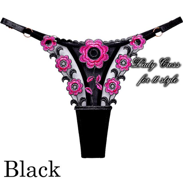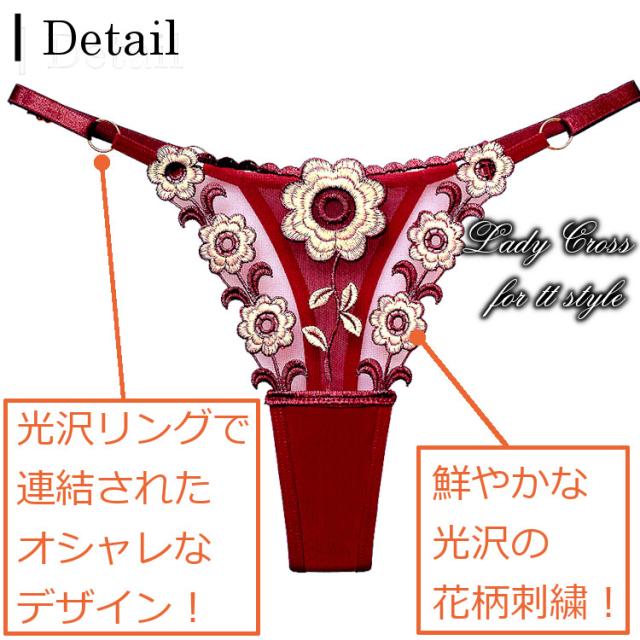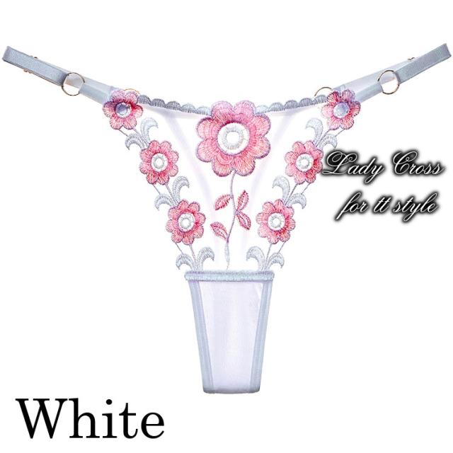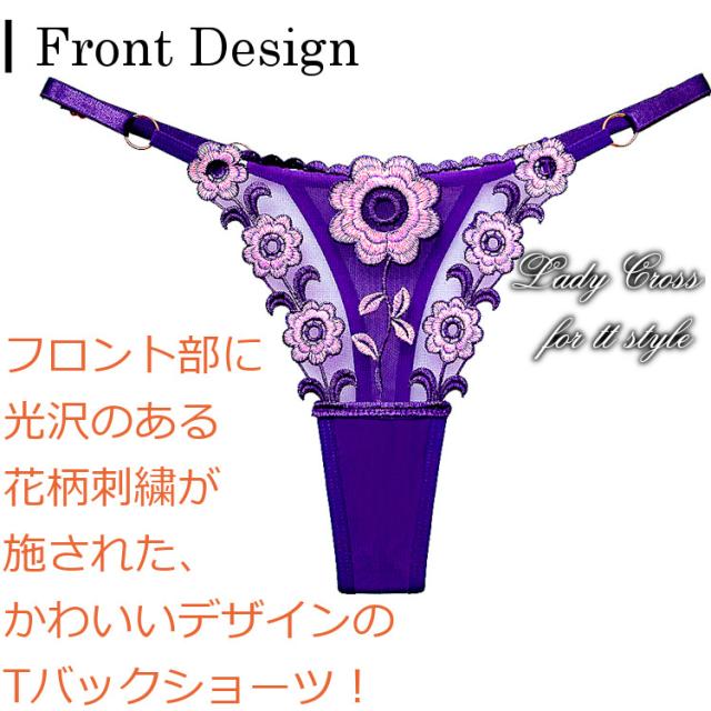 フロントに花柄を施したセクシーTバックショーツ。