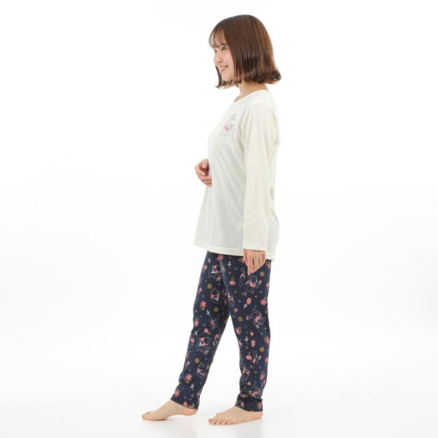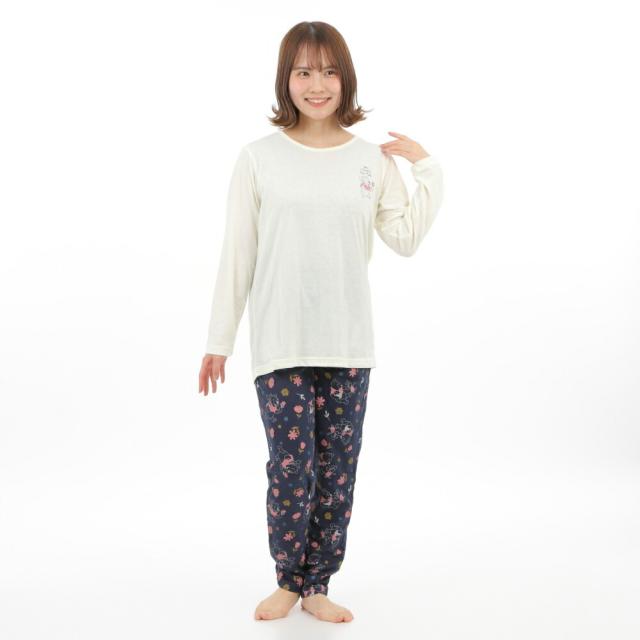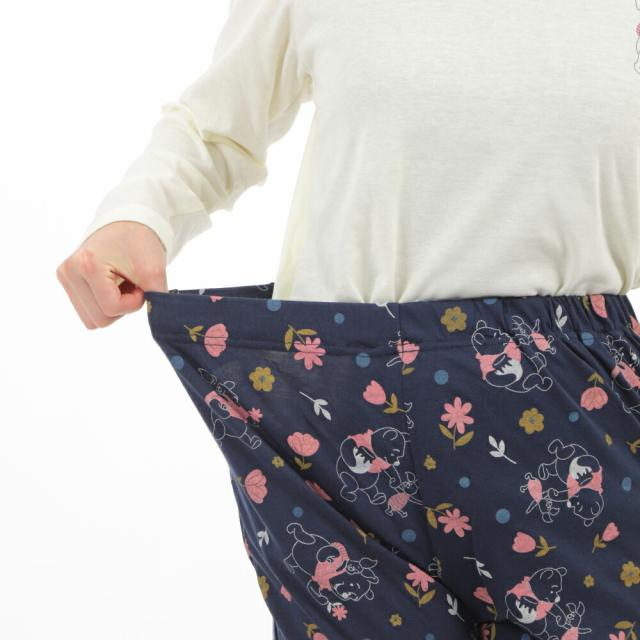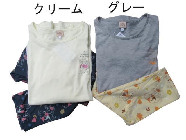 レディース パジャマ 長袖・総柄、長ズボン Tタイプ ルームウェアークマのプーさん絵柄 春 秋 グレー クリーム ナイトウェア M L LLサイズ