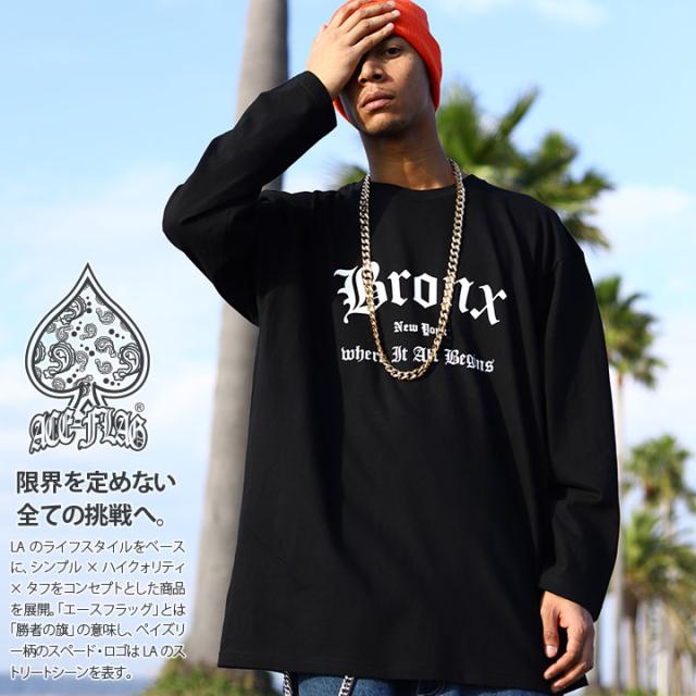 ACEFLAG ロンT メンズ 春秋冬用 黒/白 大きいサイズ エースフラッグ Tシャツ 長袖 シンプル Bronx New York ブロンクス ニューヨーク 東海岸 ロゴ b系 ヒップホップ ファッション ダンス ストリート系 ブランド 服 AF-TL-LT-028