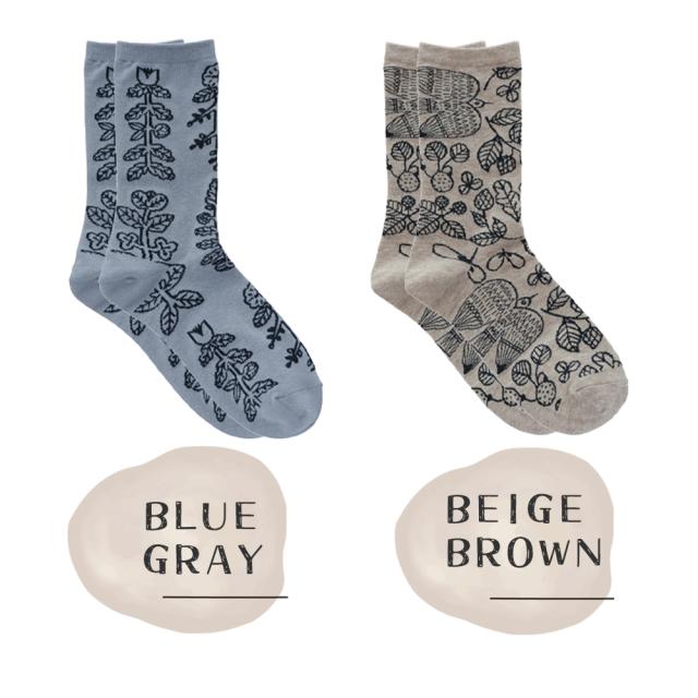 落ち着いたカラーにかわいいプリントがマッチしたソックス。