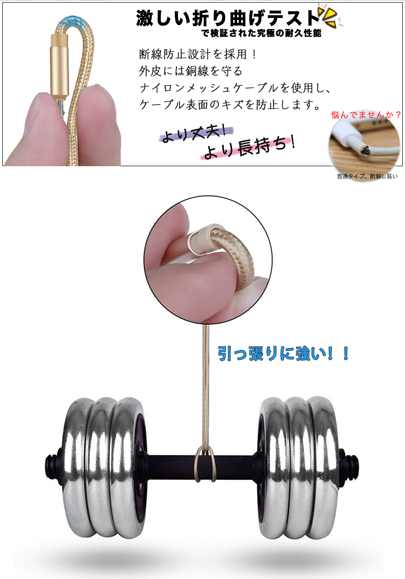 最高の高耐久を実現:強化ナイロンを使用して数千回以上の折り曲げに耐えれ、 長持ちできる充電USBケーブル。