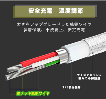 最適な急速充電:厚いワイヤーの使用とケーブル内抵抗の低減により、
