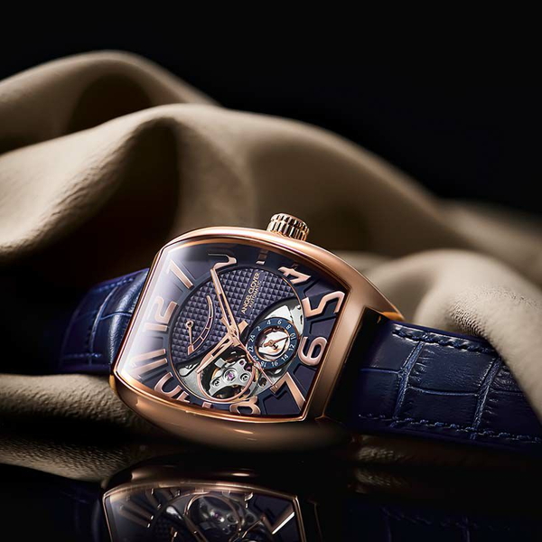 サステナビリティの観点から時計業界に広がる「機械式時計トレンド」を取り入れた、 “トノー型(樽型)”のオートマティックウォッチ。アールデコ調のインデックスと、ダイヤルのクル・ド・パリ装飾が、エレガントな個性を発揮します。