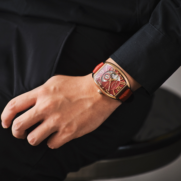 サステナビリティの観点から時計業界に広がる「機械式時計トレンド」を取り入れた、 “トノー型(樽型)”のオートマティックウォッチ。アールデコ調のインデックスと、ダイヤルのクル・ド・パリ装飾が、エレガントな個性を発揮します。