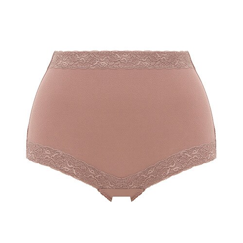 ウエスト、脚口ともにレースの裏にも身生地を付け、お肌に直接レースが当たらない仕様にしています。