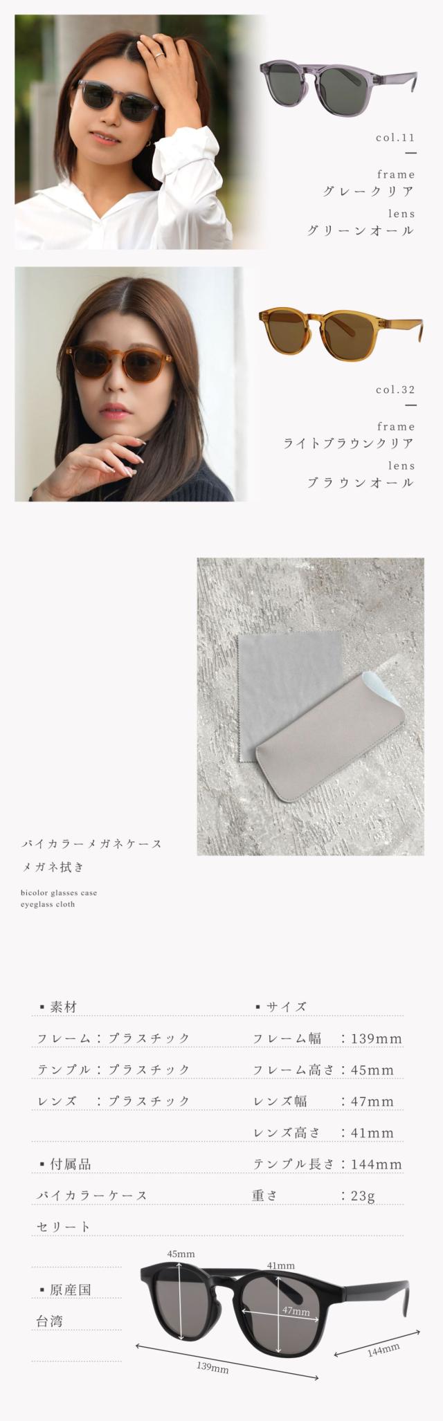 サングラス レディース おしゃれ 伊達メガネ uvカット 紫外線カット 鯖江企画 スクエア 薄い色 かわいい 専用ケース付き GG eyewear FI5010