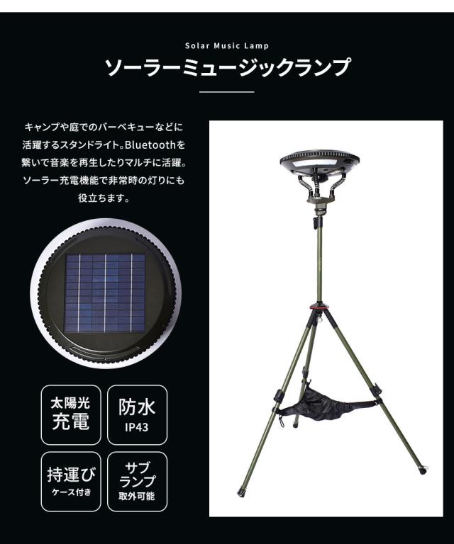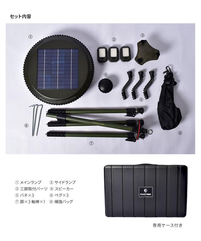 ピースパーク ソーラー ミュージック ランプ カーキ PEACE PARK SOLAR MUSIC LAMP キャンプ アウトドア ギア LED 照明 ライト おしゃれ ソーラーパネル ワイヤレススピーカー 音楽 持ち運び フェス ビーチ レジャー 軽量 コンパクト 収納 自然 夜間 収納ケース USB 防水