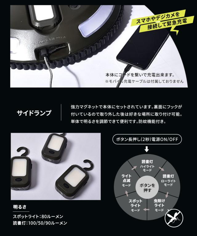明るさ(読書灯):100lm/50lm/90lm