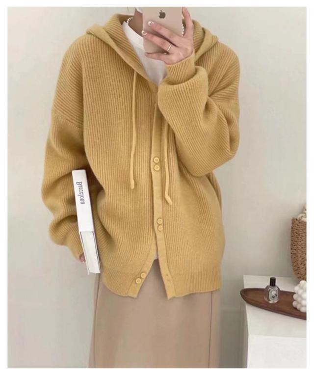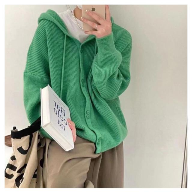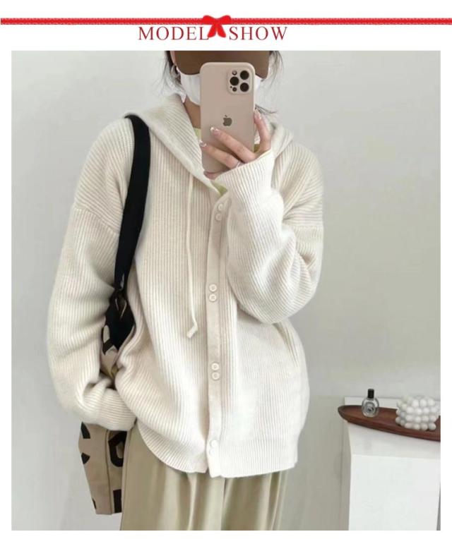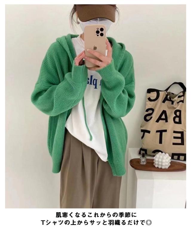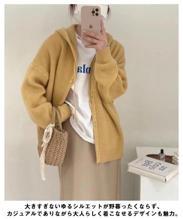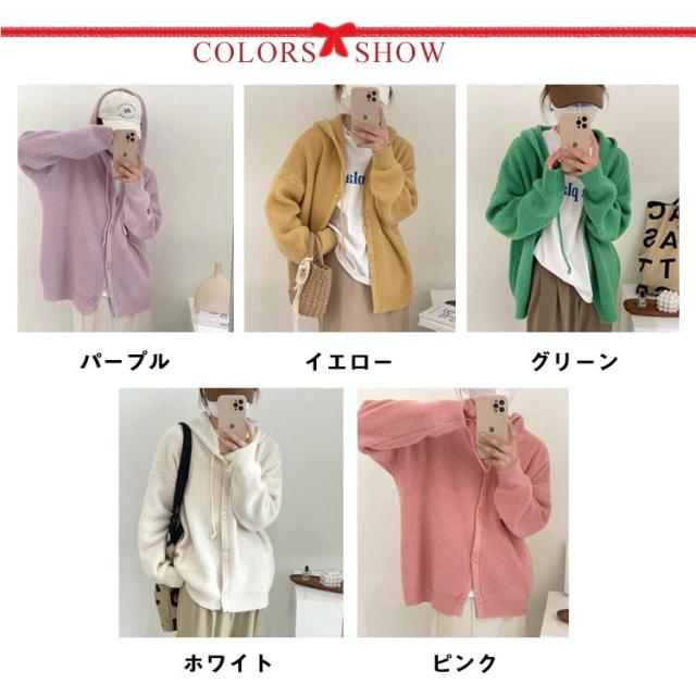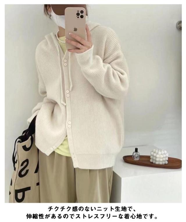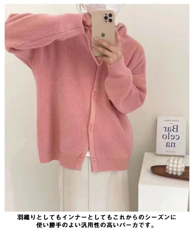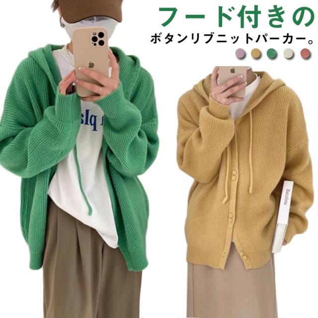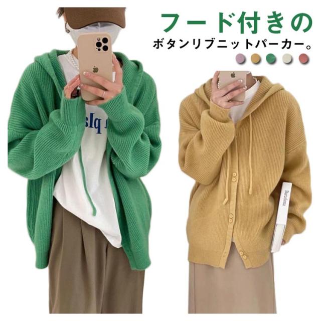 ニットパーカー 前開き ボタン フード付き レディース 40代 ニット パーカー 羽織り トップス リブニット アウター 通勤 通学 オフィス ゆったり ルーズ ルームウェア 無地 シンプル 20代 30代 50代 カジュアル 【送料無料】