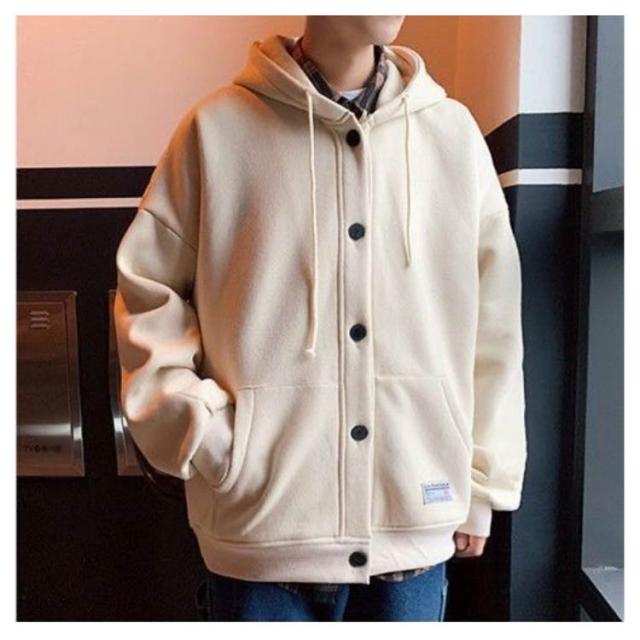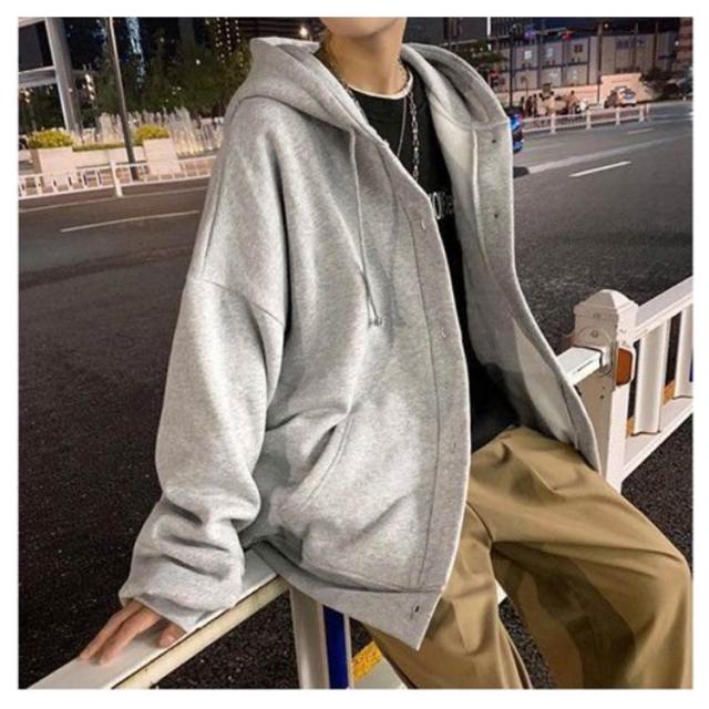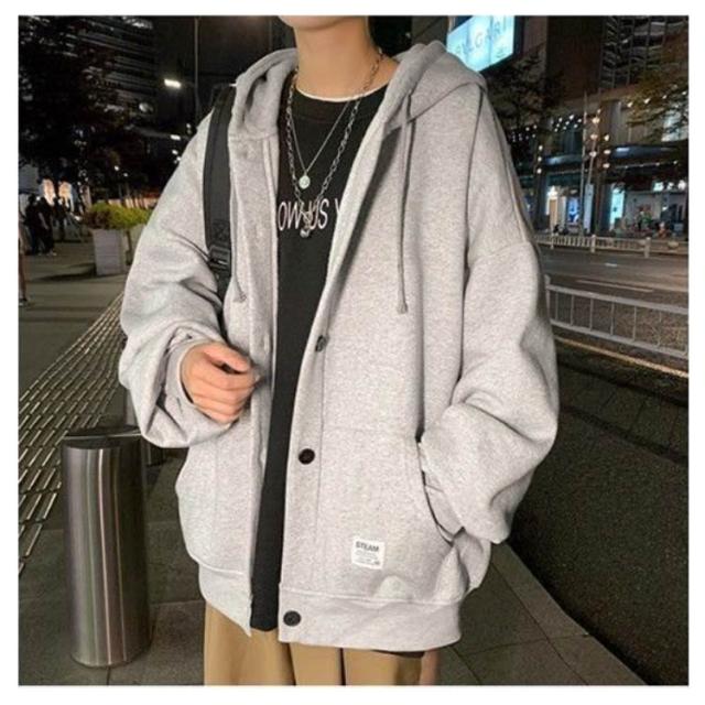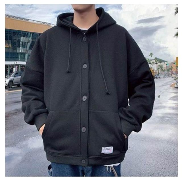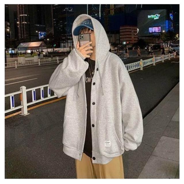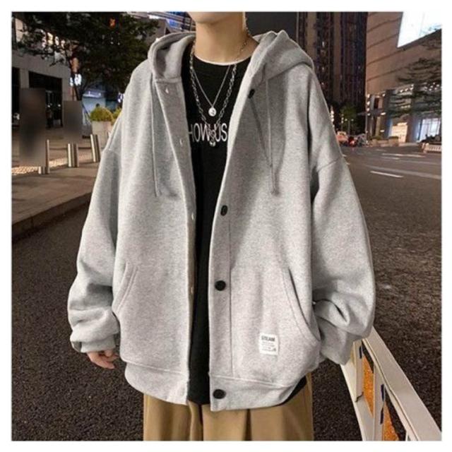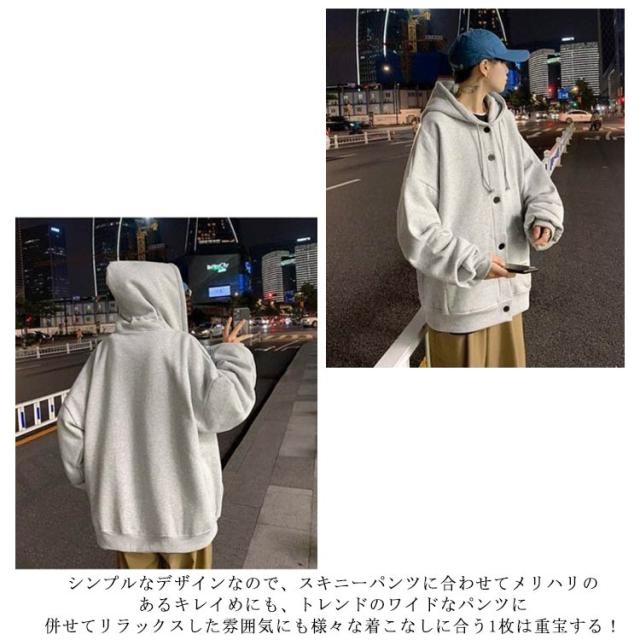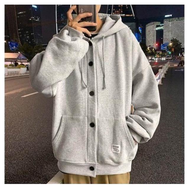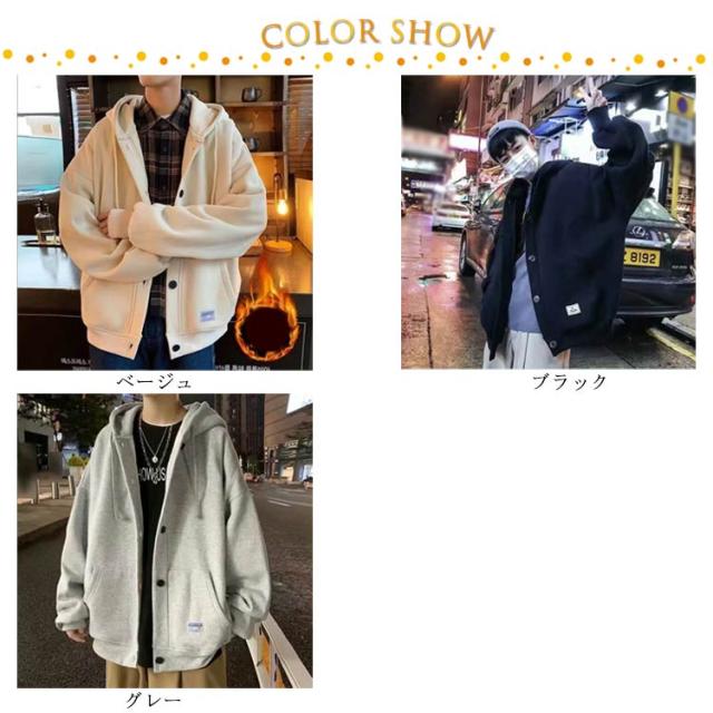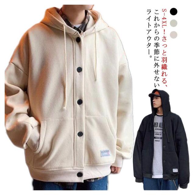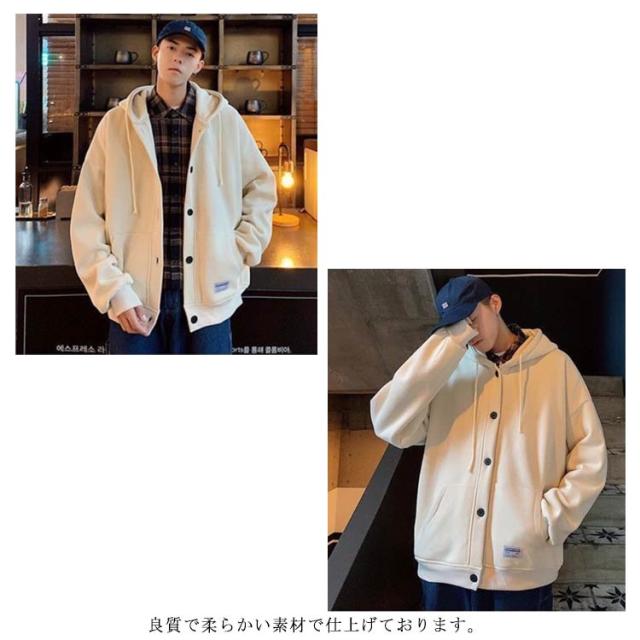 パーカー メンズ スウェット 裏起毛 厚手 長袖 アウター ボタンパーカー フード付き トップス ゆったり ビッグシルエット 大きいサイズ 羽織 パーカ スタジャン ジャンパー ブルゾン 前開き ボタン留め カーディガン 春 秋 冬 カジュアル ジャケット 部屋着 おしゃれ