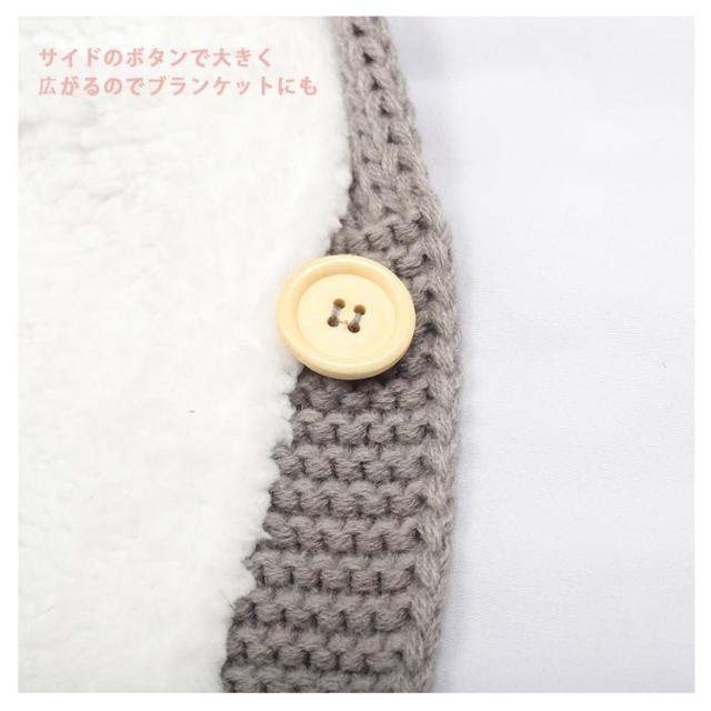 | おしゃれなケーブル編みニット 裏は柔らかいシープボアつきであたたかいので防寒にも 足がすっぽり包まるので蹴って落とす心配がありません。 ご自宅使いはもちろん、出産祝いなどのギフトとしてもおすすめです。 サイドのボタンで大きく広がるのでブランケットにも | |