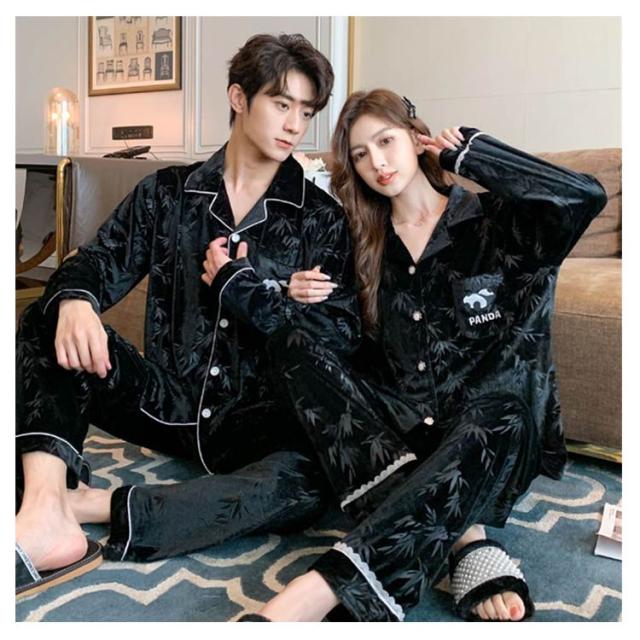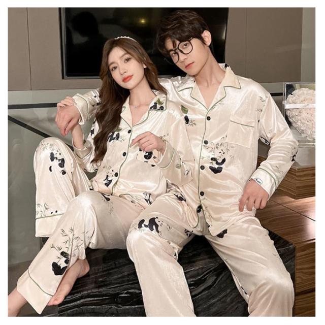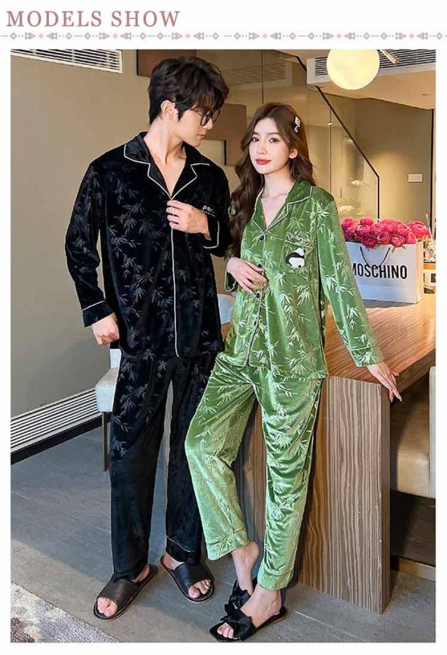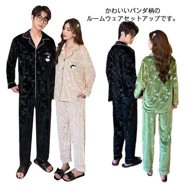 ベロアタッチ パンダ柄 上下セット 前開き 部屋着 セットアップ レディース メンズ ルームウエア ナイトウェア パジャマ 寝間着 リラックスウェア セット 大人 可愛い ペアルック M L XL 2XL