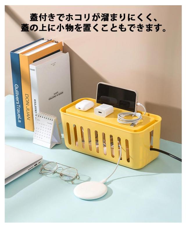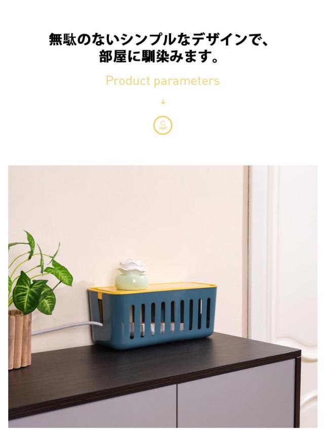 | シンプルながらスタイリッシュなケーブルボックス。 通気口を施し、熱がこもりにくいように設計されています。 蓋付きでホコリが溜まりにくく、蓋の上に小物を置くこともできます。 無駄のないシンプルなデザインで、部屋に馴染みます。 | |