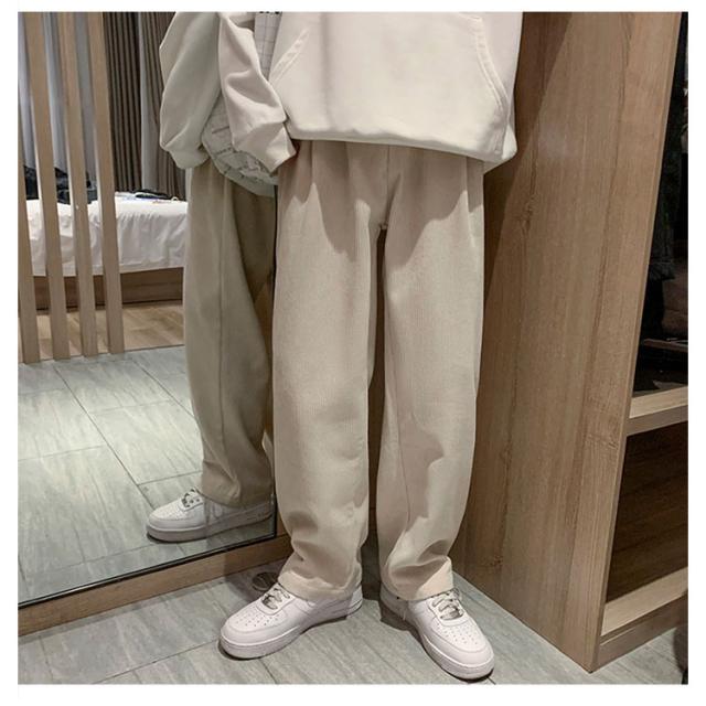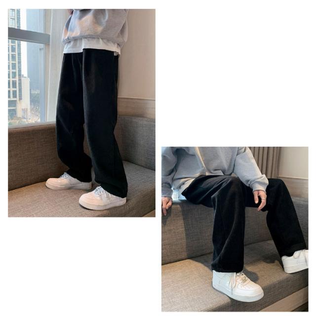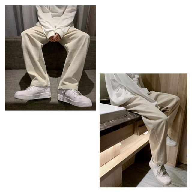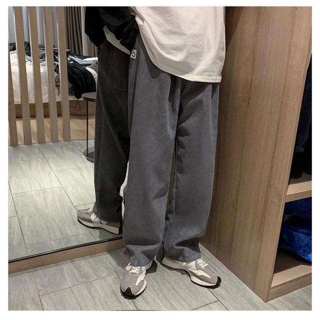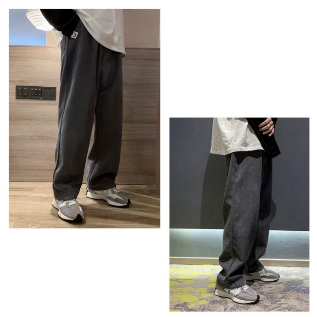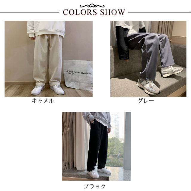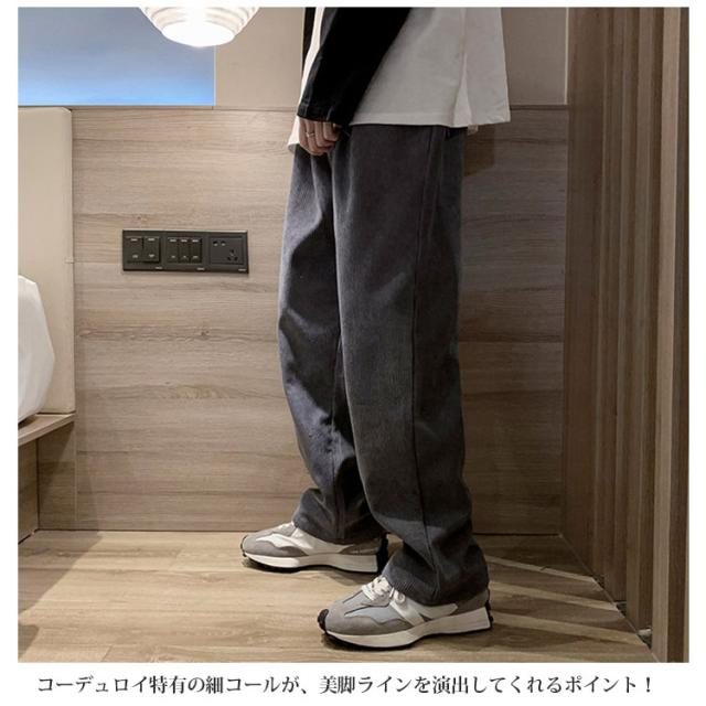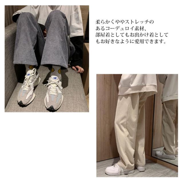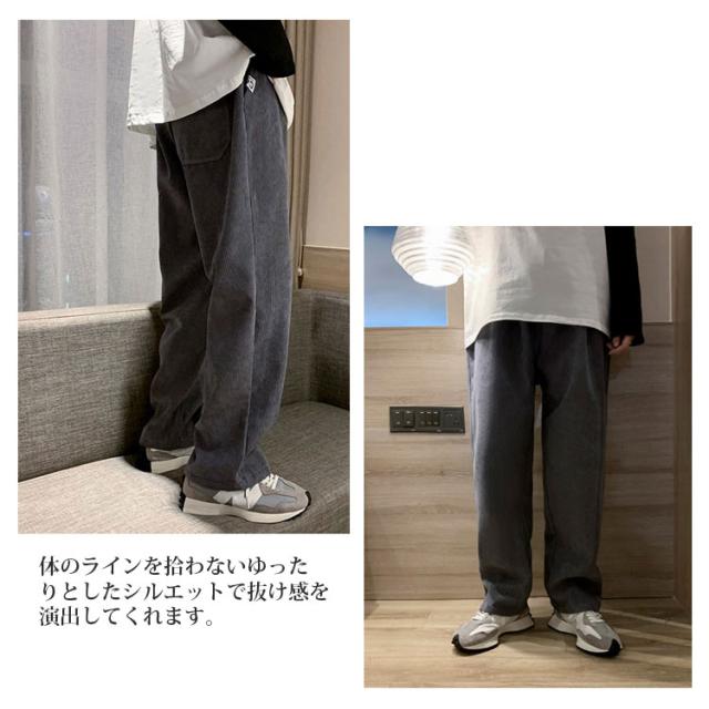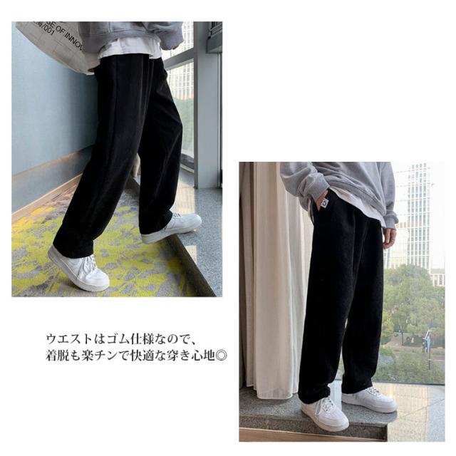 送料無料 春秋 コーデュロイパンツ イージーパンツ ストレートパンツ メンズ リラックスパンツ ワイドパンツ カジュアルパンツ お洒落 おしゃれ ロングパンツ 長ズボン パンツ ルーズ 大きいサイズ 春物 秋服 ウェストゴム 秋冬