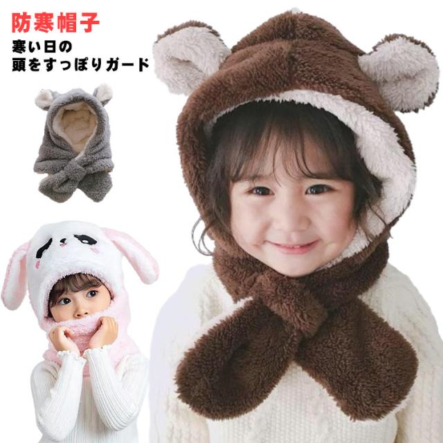 ネックウォーマー 可愛い 子供 帽子 被り物 耳付き マフラー 防寒帽子 裏起毛 秋 冬 送料無料 耳当て モコモコ 暖かい ウサギ 兎 パンダ 熊 ベビー帽子 女の子 男の子 かわいい