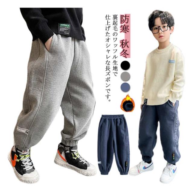 ワッフルパンツ 裏起毛 ロングパンツ 子供服 長ズボン キッズ 男の子 ボトムス 子ども こども服 スウェットパンツ かっこいい 秋冬 カジュアル 防寒 あったか 男児 ボーイズ ジュニア 110 120 130 140 150 160cm 送料無料