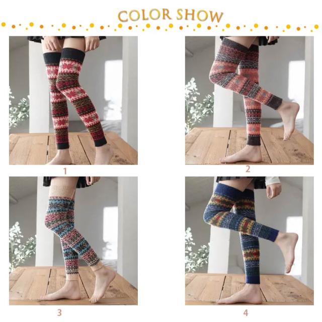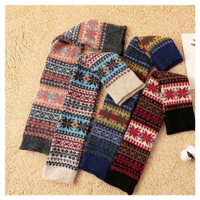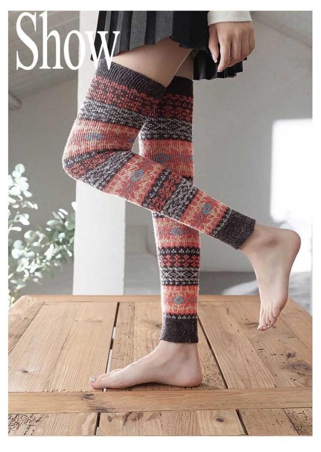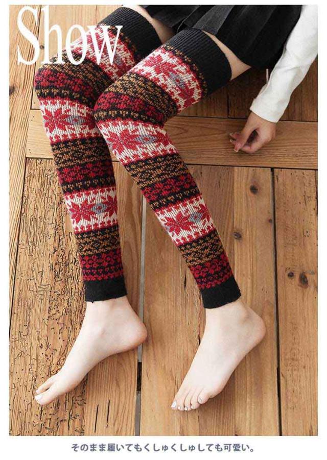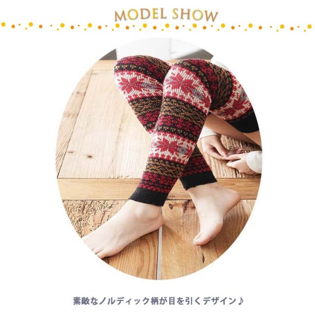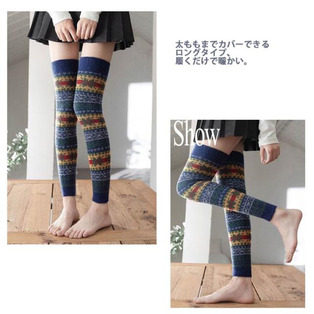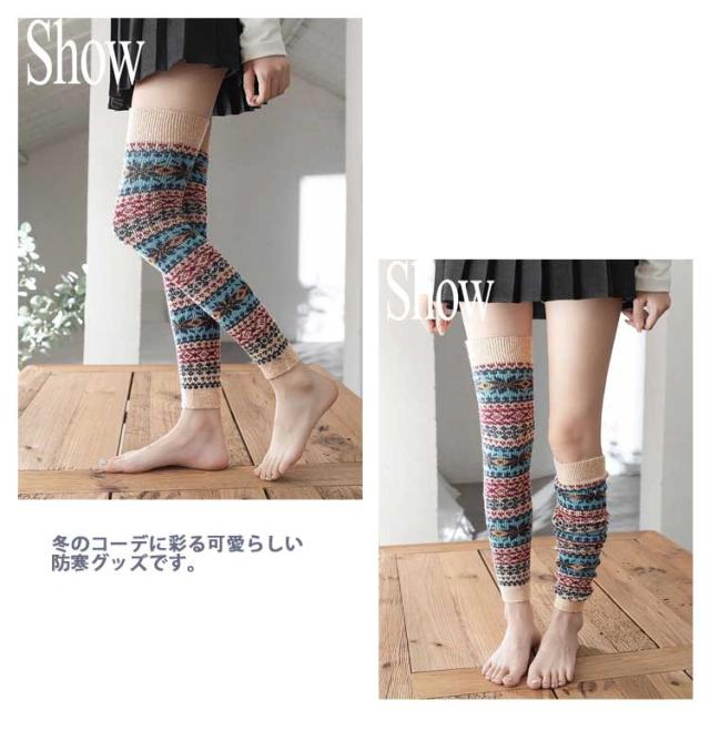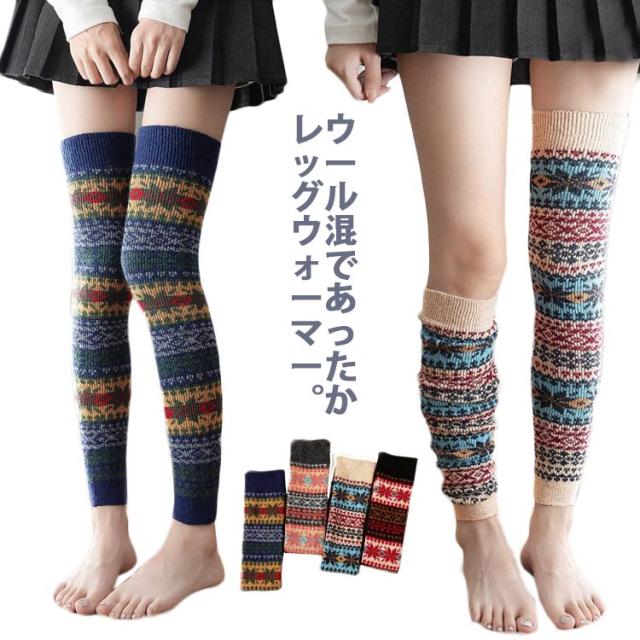 ウール混 レッグウォーマー 暖かい 60cm 防寒 冷え対策 ノルディック柄 ブーツカバー おしゃれ 送料無料 ロングタイプ 伸縮性