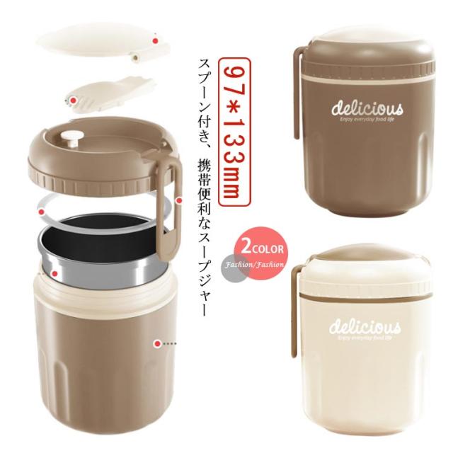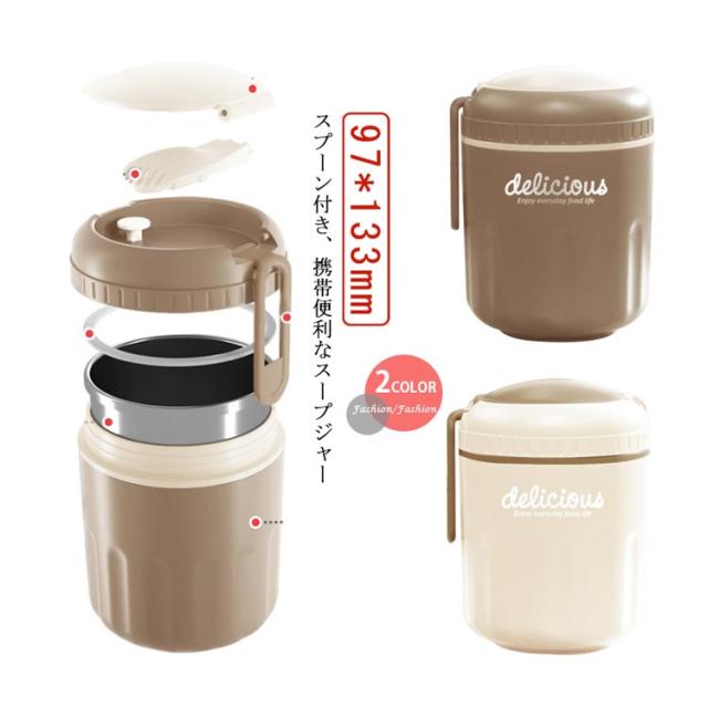【送料無料】スープジャー フードポット 大容量 スプーン付き ステンレス 保冷 保温 真空二重構造 フードジャー 魔法瓶 保温弁当箱 スープボトル 作り置き ランチポット コンパクト かわいい シンプル おしゃれ 大人 子供 通勤 通学 誕生日 クリスマス ギフト プレゼント