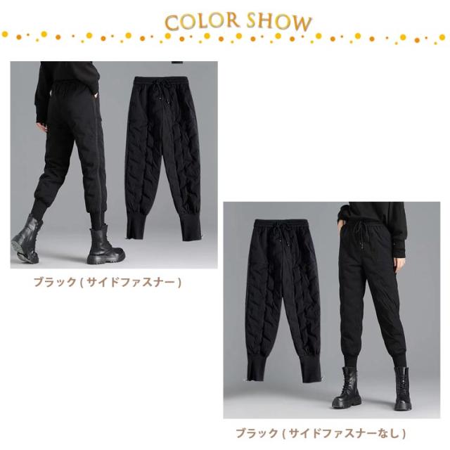 中綿 パンツ レディース ダウン風パンツ ロングパンツ 軽量 暖かいパンツ 防寒 サイドファスナー イージーパンツ ジョガーパンツ あったか 保温 防風 防寒着 部屋着 美脚 ボトムス 無地 シンプル 大きいサイズ カジュアル おしゃれ 通勤 通学
